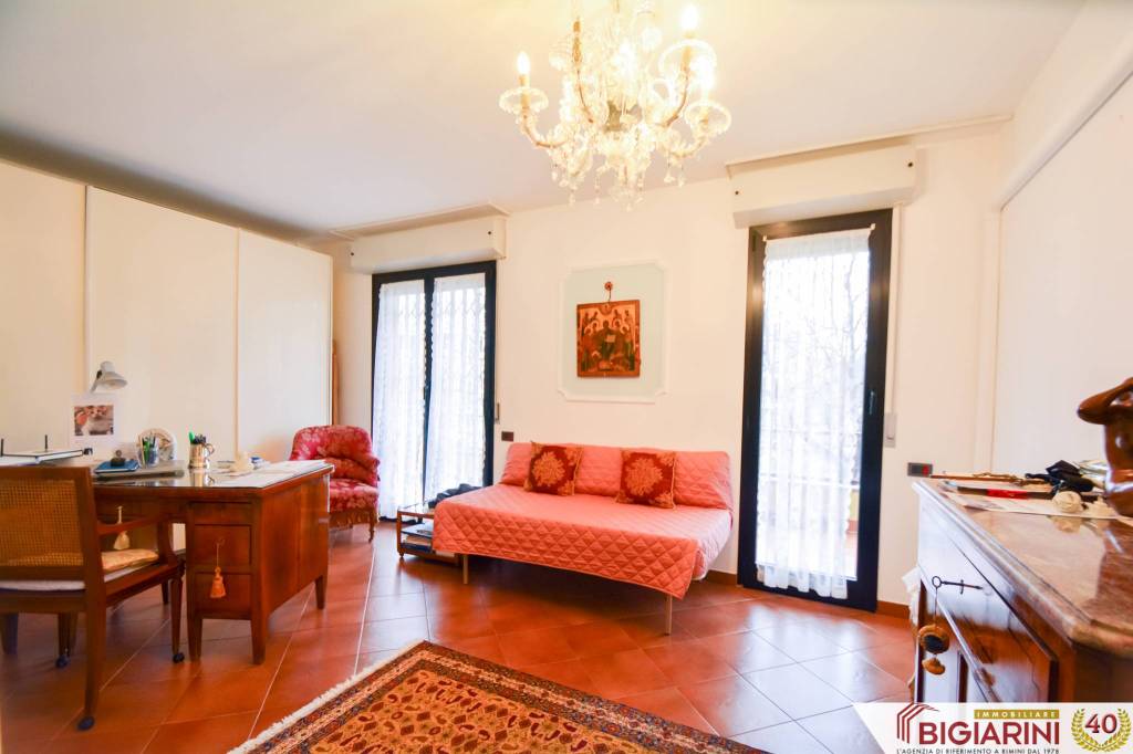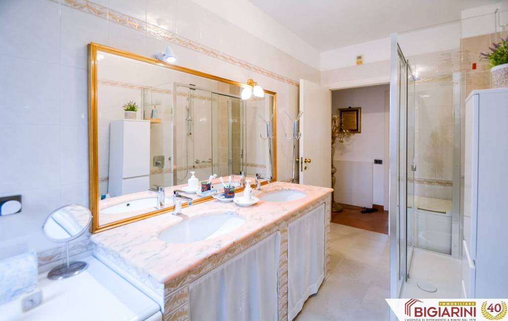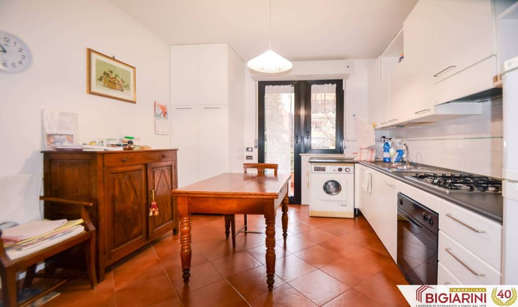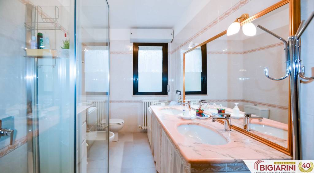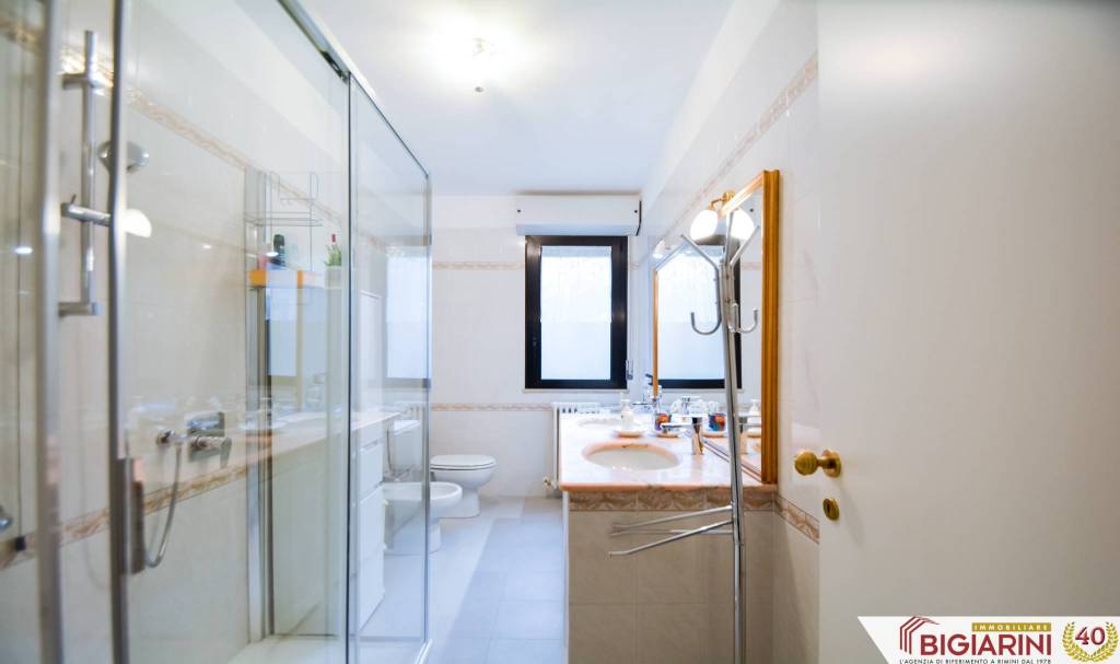 A Rimini Marebello, nella zona residenziale Parco San Giuseppe, proponiamo un ampio appartamento ristrutturato al primo piano di palazzina fronte parco di recente costruzione. COMPOSIZIONE Salone, cucina separata abitabile, disimpegno, un bagno, due grandi camere matrimoniali, tre balconi accessibili da tutti gli ambienti principali. Al piano terra, un garage con basculante motorizzata, un posto auto esclusivo recintato di fronte al garage e una cantina al piano seminterrato. SUPERFICIE Appartamento: 115 mq Balconi e logge: 20 mq. Posto auto: 12 mq Cantina: 8 mq Garage: 20 mq. Totale superficie commerciale: 145 mq STATO INTERNO L'appartamento si presenta in ottime condizioni: pur di recente costruzione, sono stati eseguiti migliorie nel 2020, tra le quali il riscaldamento a pavimento a pompa di calore autonoma, con termostati di zona in ogni ambiente, climatizzazione completa, pavimenti in cotto, parquet nella zona notte, bagno ampliato, box doccia doppio, doppio lavandino, antifurto, grate antiintrusione, tapparelle con sistema di sicurezza; oltre a infissi in alluminio con doppi vetri, portone blindato. Tutti gli impianti sono completamente autonomi, recenti e certificati a norma. STATO ESTERNO Il palazzo è stato realizzato intorno agli anni 2000, è dotato di ascensore, termo-cappotto con finiture in mattoncini a vista; ha parti comuni ben tenute, sia internamente sia esternamente. POSIZIONE L'appartamento si trova in zona residenziale recente di Marebello, di fronte al parco, vicina a tutti i servizi ideali per le famiglie. PREZZO 315.000 € Per informazioni e visite, rivolgersi a Paolo di Immobiliare Bigiarini al +39 333 71 71 169 oppure scrivici al nostro WhatsApp aziendale 0541 309240